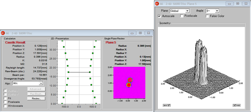 モード可変レーザは光ファイバ内に光の通り道が2つ(または3つ)あるレーザです。通常は1つですので、結像するとフォーカスは1つですが、モード可変レーザの場合は2つ(または3つ)できます。
