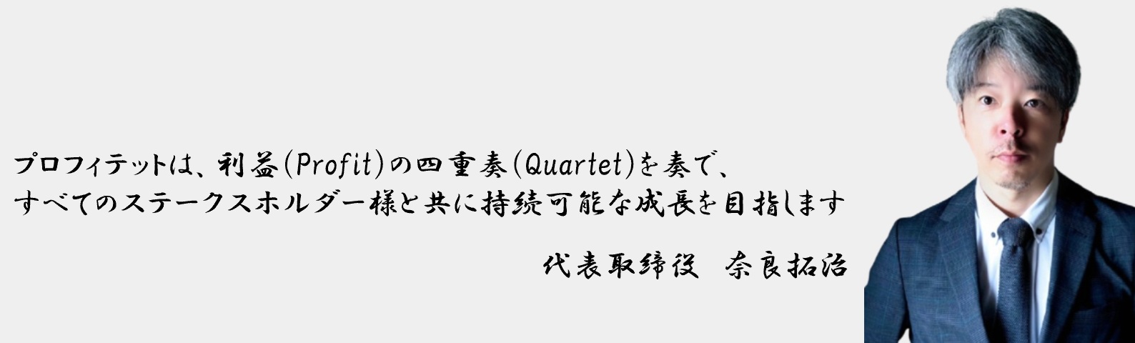 社名「プロフィテット(Profitet)」は、「利益(Profit)」と「四重奏(Quartet)」を組み合わせた造語です。